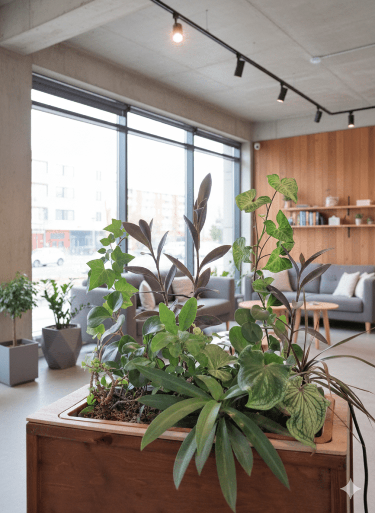 The pots are available in various designs to suit all tastes and decor, including options made of fiberglass, wood, and plastic. Customers can choose the type that fits their space’s design, along with a wide selection of indoor plants that add a unique and sustainable aesthetic touch.